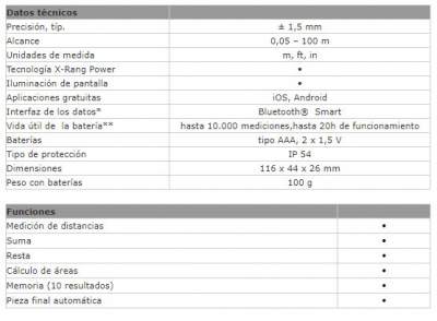 | Interfaz de los datos* | Bluetooth® Smart |