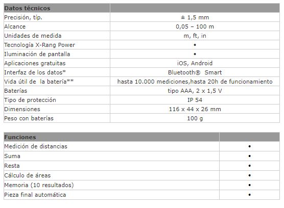 | Interfaz de los datos* | Bluetooth® Smart |