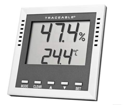 Cumple con los requisitos federales de la especificación CLIA 493.1207 para monitorear la temperatura y la humedad. Los dígitos de la pantalla LCD tienen una altura de 1 pulgada. Se suministra con dos baterías alcalinas AA para monitoreo continuo de 1 año siempre activo y certificado Traceable® . El estuche es de ABS resistente a los productos químicos y de alto impacto, con soporte de plástico incorporado y montaje en pared. El tamaño es de 4-1/8 x 4-1/8 x 1 pulgadas. El peso es de 4-1/4 onzas. Batería de repuesto N.º de cat. Nº 1111.